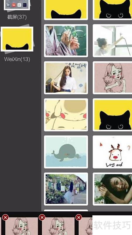 2、 进入拼图页面,挑选心仪图片连续选择九次,右下角将显示九张已选图...