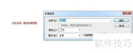 5、 启动PS,选择文件菜单中的新建命令,创建新图层后双击右侧图层进行解锁操作。