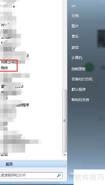 1、 点击左下角开始按钮,选择所有程序中的附件选项。