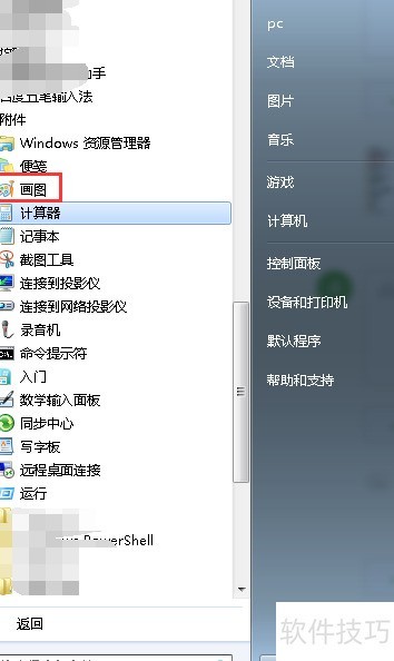 2、 在附件选项中找到并点击下方的画图程序即可打开。