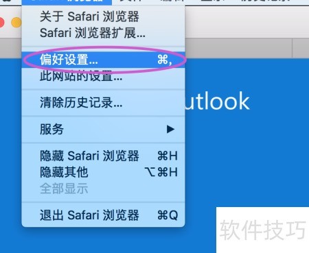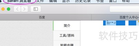 1、 点击Mac电脑屏幕左上角的Safari浏览器菜单。