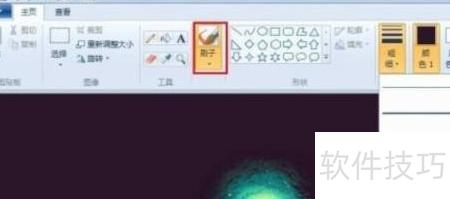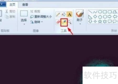 2、 点击顶部菜单栏中的颜色选择工具,位置中箭头所示。