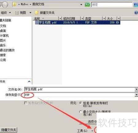6、 此处选择PDF格式文件(也可按需选用XPS格式),点击发布按钮,即可将Excel文件转换并保存为PDF格式。