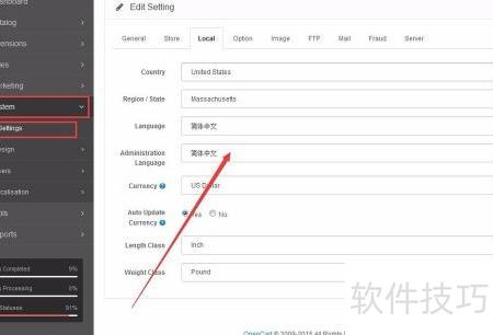6、 如需更改后台及前台默认语言,可进入系统设置中的店铺编辑页面进行调整。
