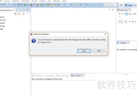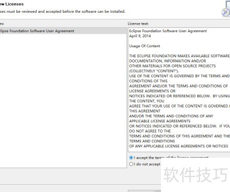 4、 一直点击下一步,直到出现协议页面时勾选同意后点击完成。随后程序开始下载语言包,此过程中弹出的提示框直接确认即可。下载完成后会询问是否立即重启软件,选择是进行重启,重启后Eclipse即已成功汉化并可正常使用。