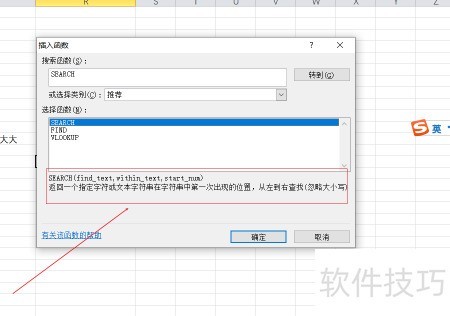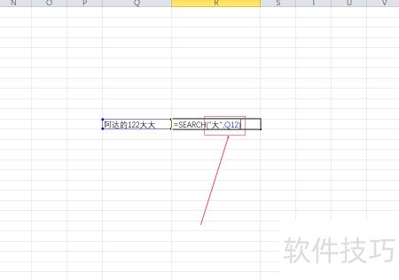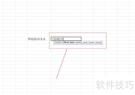 3、 举例说明,在其中输入SEARCH函数即可。