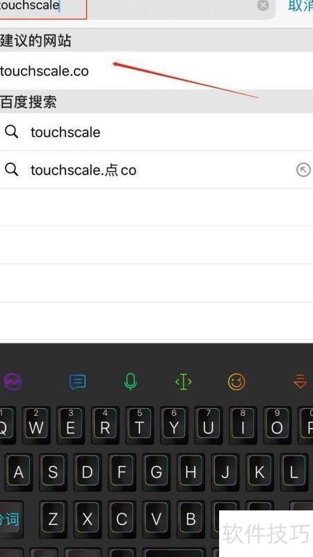 4、 在浏览器地址栏输入touchscale,然后点击搜索按钮即可。