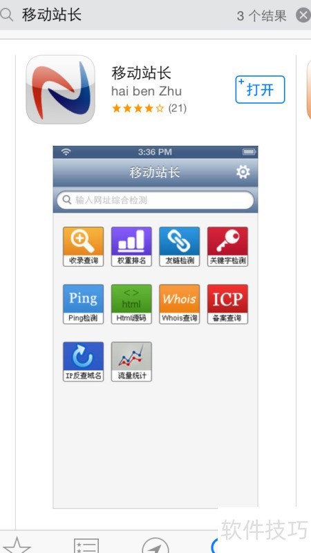 1、 在App Store中搜索移动站长,找到该应用并点击下载安装即可。