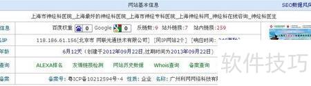 6、 网站权威概况涵盖标题、权重、PR值、域名年限、备案情况及SEO指标,如外链数量与首页内链分布等核心数据。