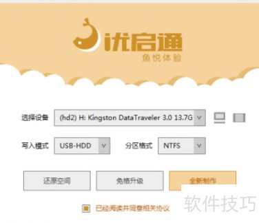3、 默认进入U盘模式,系统将自动识别当前U盘,点击全新制作按钮开始创建PE启动盘,稍等几分钟即可完成制作。