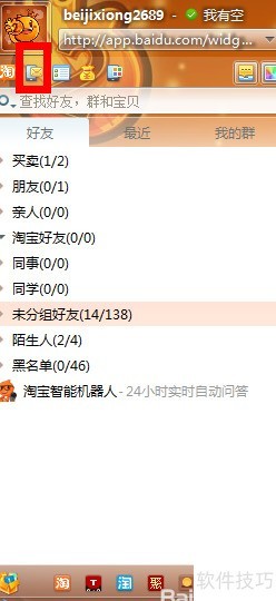 2、 登录后点击头像下方的短信旺旺图标即可。