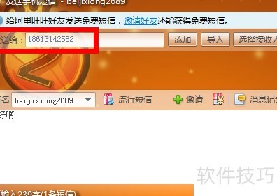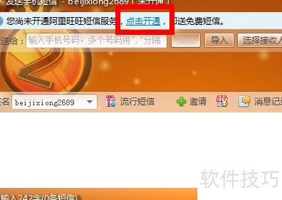 5、 此时可使用短信旺旺免费发送信息。