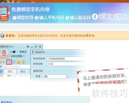 通过阿里旺旺的短信功能可免费发送信息。