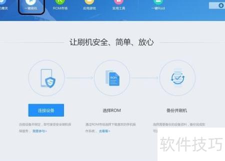 4、 点击顶部工具栏的刷机功能按钮。