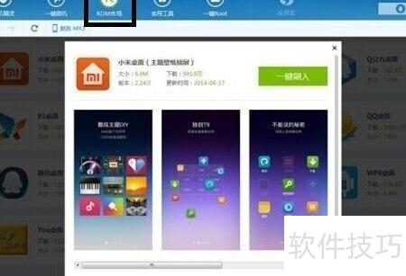 5、 进入页面后,点击ROM市场,可挑选多种桌面进行设置。