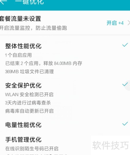 6、 手机管家会自动评估系统当前状态,点击页面上的一键优化即可快速提升性能。
