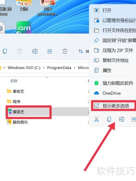 8、 右键点击文件位置,选择显示更多选项即可。