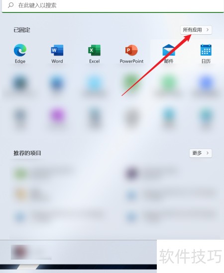 2、 打开开始菜单,选择所有应用即可。