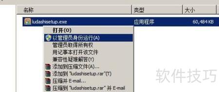 3、 右键点击ludashisetup.exe安装文件,从菜单中选择以管理员身份运行进行安装。