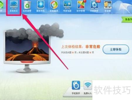 6、 使用金山卫士也是不错的选择,打开软件后点击系统优化功能,即可有效提升系统运行效率,让电脑更加流畅稳定。