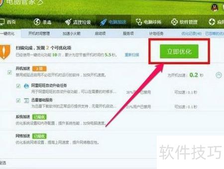 8、 电脑管家是一款广受用户欢迎的优化工具,进入主界面后,在一键优化区域点击立即优化按钮,即可快速完成系统优化,操作简单便捷。