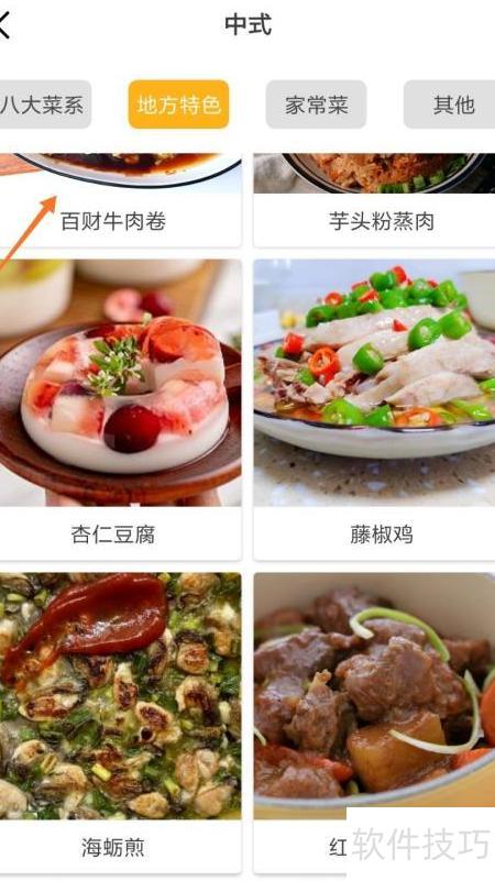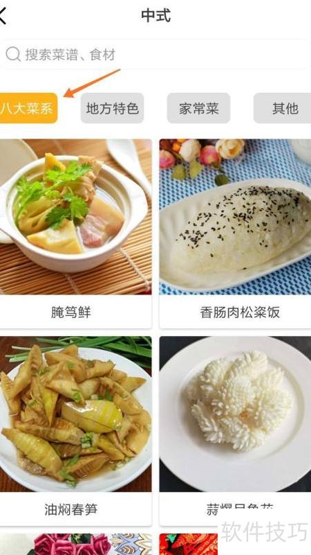 2、 进入中式页面后,点击顶部八大菜系进行选择。