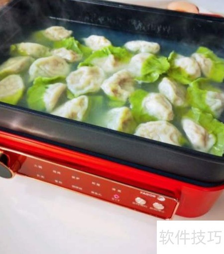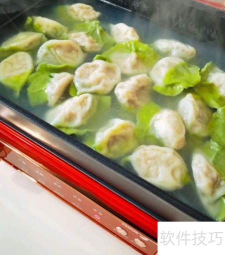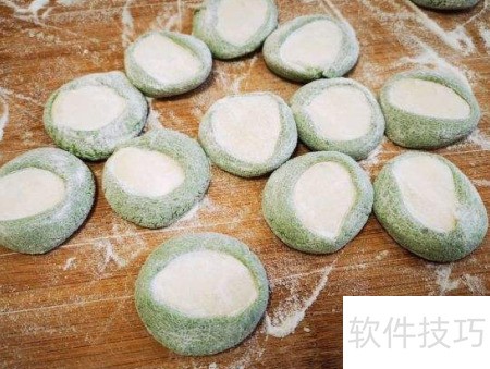 14、 将面团分成小剂子,压扁后擀成饺子皮,包入喜爱的馅料,做成可爱的白菜形状。多功能锅加适量水烧开即可。