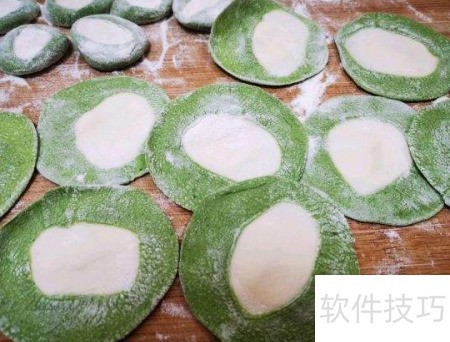 1、 菠菜焯水后榨汁,和面制成绿色面团。