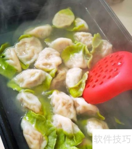 15、 下饺子啦!煮时用漏勺轻轻推动防粘底,待饺子全部浮起即可出锅。