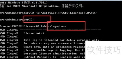 2、 关闭防火墙后仍无法直接启动ArcGIS,因lmgrd.exe尚未运行。需进入DOS界面,切换至该程序所在目录并手动执行。