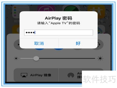 6、 双击选中设备后,iPad 会提示输入 Apple TV 的密码。该密码为即时生成,将显示在电视屏幕上,根据电视上出现的六位数字,在 iPad 上准确输入即可完成配对。