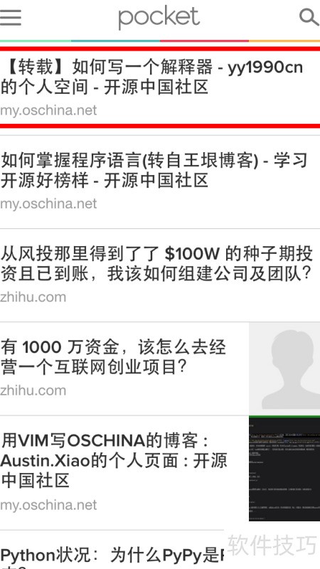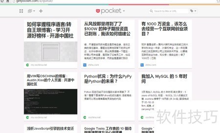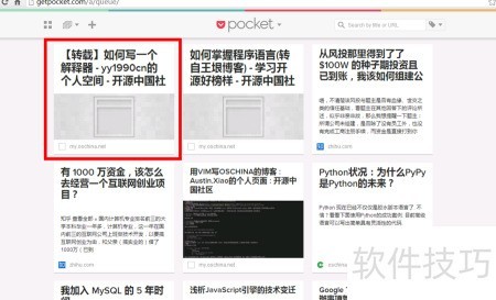 5、 返回Pocket列表页面后,新添加的网页已显示其中。点击即可阅读,阅读完成后在列表中勾选相应条目,即可将其标记为已读并移除。