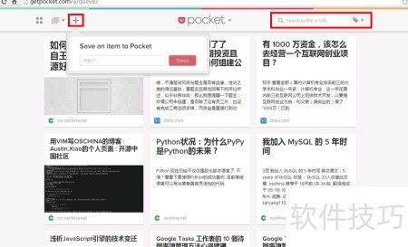 2、 注册并登录后,您将进入未读网页列表页面。所示,可点击+号添加网页,或在右上角搜索框中输入网址进行搜索和添加。