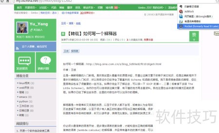 4、 下载扩展后,打开任意想阅读的网页,在Chrome浏览器右上角点击扩展图标,选择Pocket即可保存。首次使用需登录,输入注册时的账号密码完成登录操作,之后便可随时收藏网页内容,方便后续阅读。