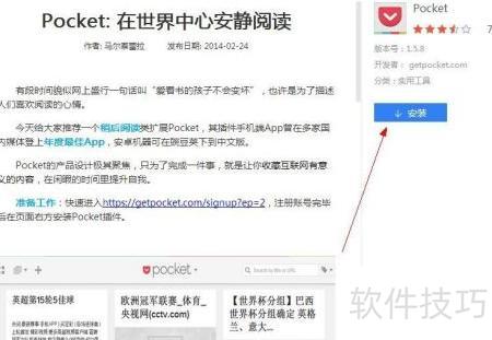 1、 打开谷歌或百度浏览器,进入应用中心,搜索Pocket应用,查看相关评测信息。