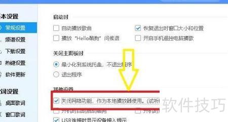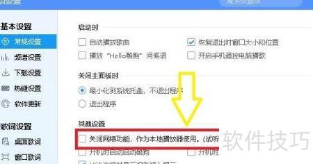 5、 勾选关闭网络功能,用作本地播放器选项。