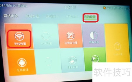 4、 打开电视后应显示如下画面,若未出现,说明信号源有误,需用遥控器按下信号键进行切换,直至画面出现。随后选择我的设置,进入无线连接选项即可。