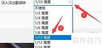 5、 点击淡入淡出歌词块按钮,从弹出选项中选取所需歌词块类型,例如选择1/10高度。