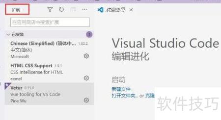 3、 点击界面左侧菜单栏中的扩展按钮,操作所示。