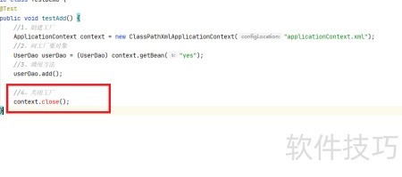 3、 将ApplicationContext替换为ClassPathXmlApplicationContext后,即可调用close方法进行资源释放,从而更好地管理Spring容器的生命周期。