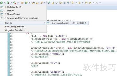 24、 点击运行按钮,选择Run As中的Java Application,操作所示。