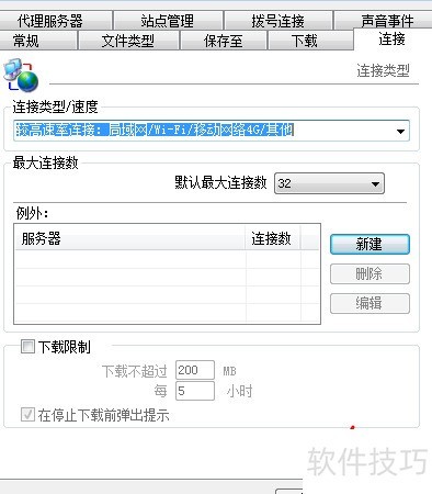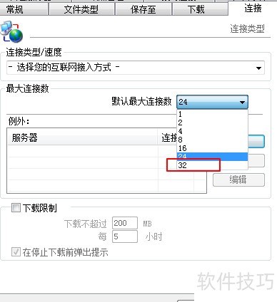 5、 将连接数设为32是最大值,但需根据电脑配置调整。以下载时不卡顿为准,通过实际测试找到最适合自己的数值。