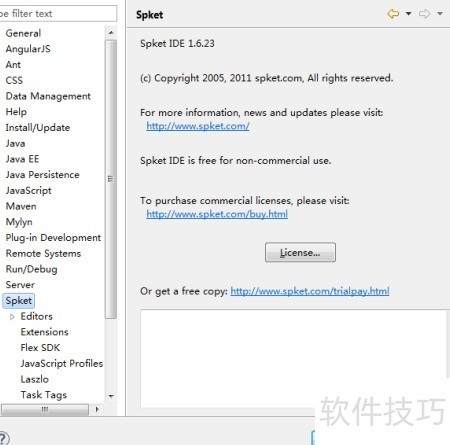 3、 启动Eclipse后,进入窗口的首选项,在左侧列表中即可找到Spket选项。