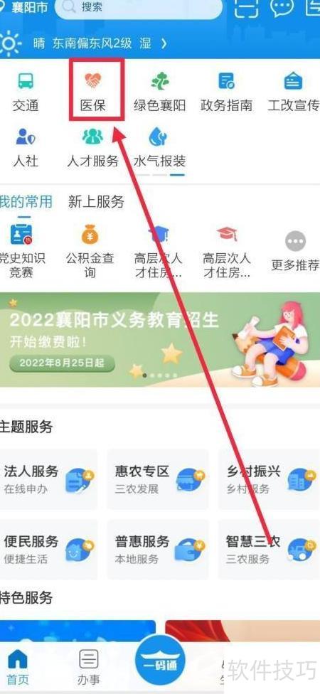 2、 点击顶部医保选项