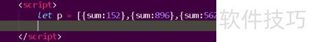 2、 在script标签内创建一个对象数组,并将其赋值给变量p,具体操作所示。