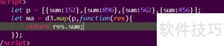 3、 第三步,调用d3的map方法,通过回调函数遍历并返回其中的每个元素,具体所示。