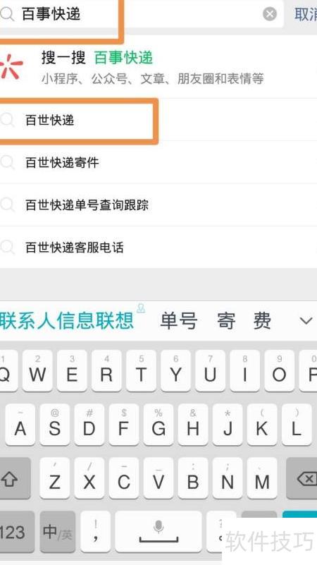 6、 输入百事快递并点击确认即可。