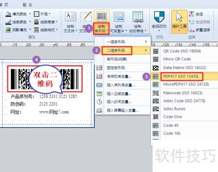 2、 选择PDF 417码并绘制二维条码。