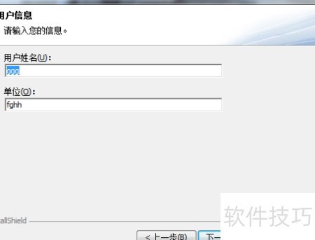 7、 用户名和单位保持默认,直接点击下一步即可。