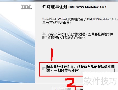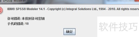 14、 启动IBMSPSS Modeler 14.1前若未注册,系统将弹出提示信息,完成注册后该提示将不再出现。